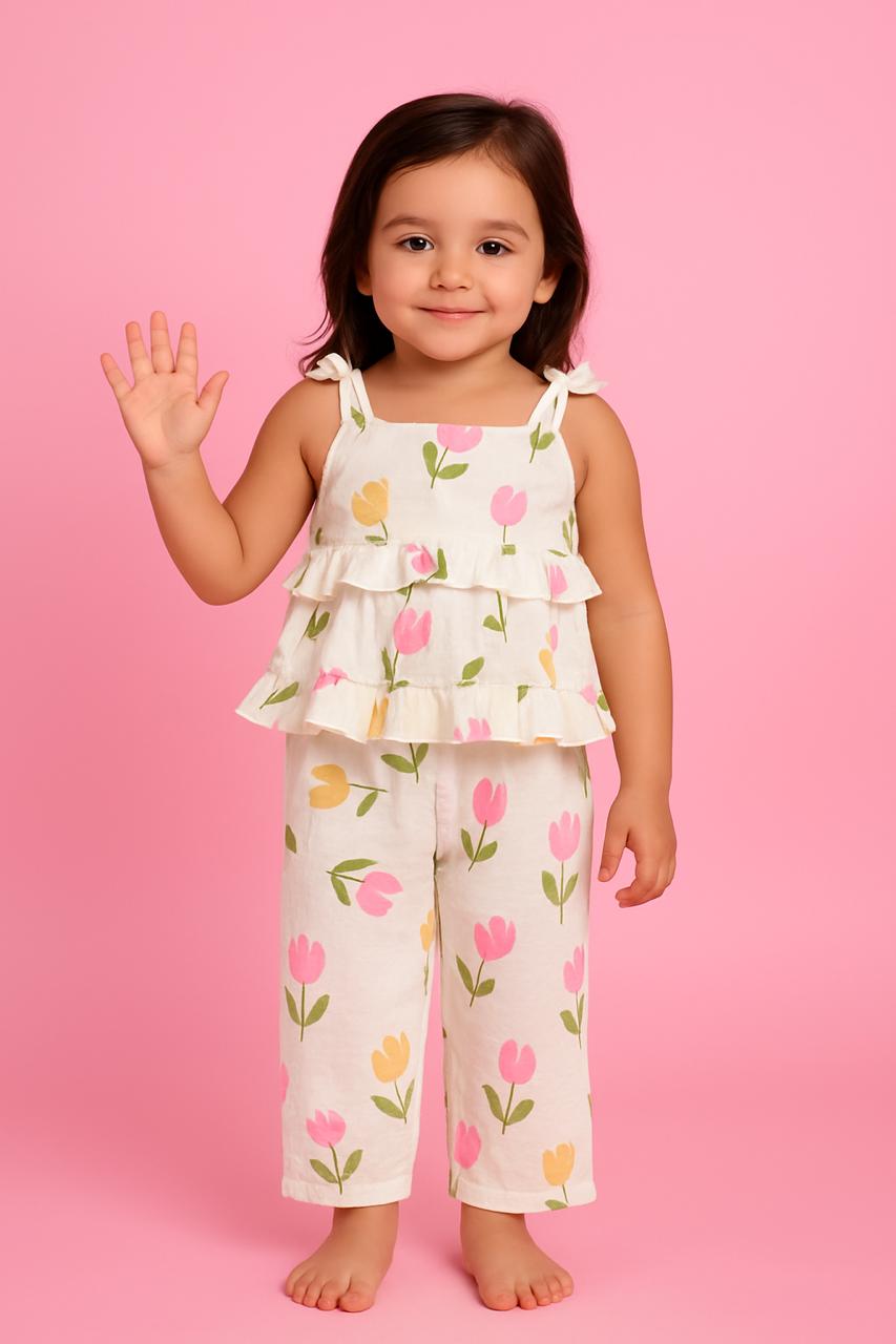 Bring a burst of joy to your little one’s wardrobe with our 100% cotton co-ord sets! Designed to add comfort and charm, these adorable sets feature vibrant colors and playful patterns that kids love. Whether it's for lounging at home, a day out with friends, or a fun family get-together, our co-ord sets keep your little girl looking effortlessly stylish while feeling oh-so-comfy.