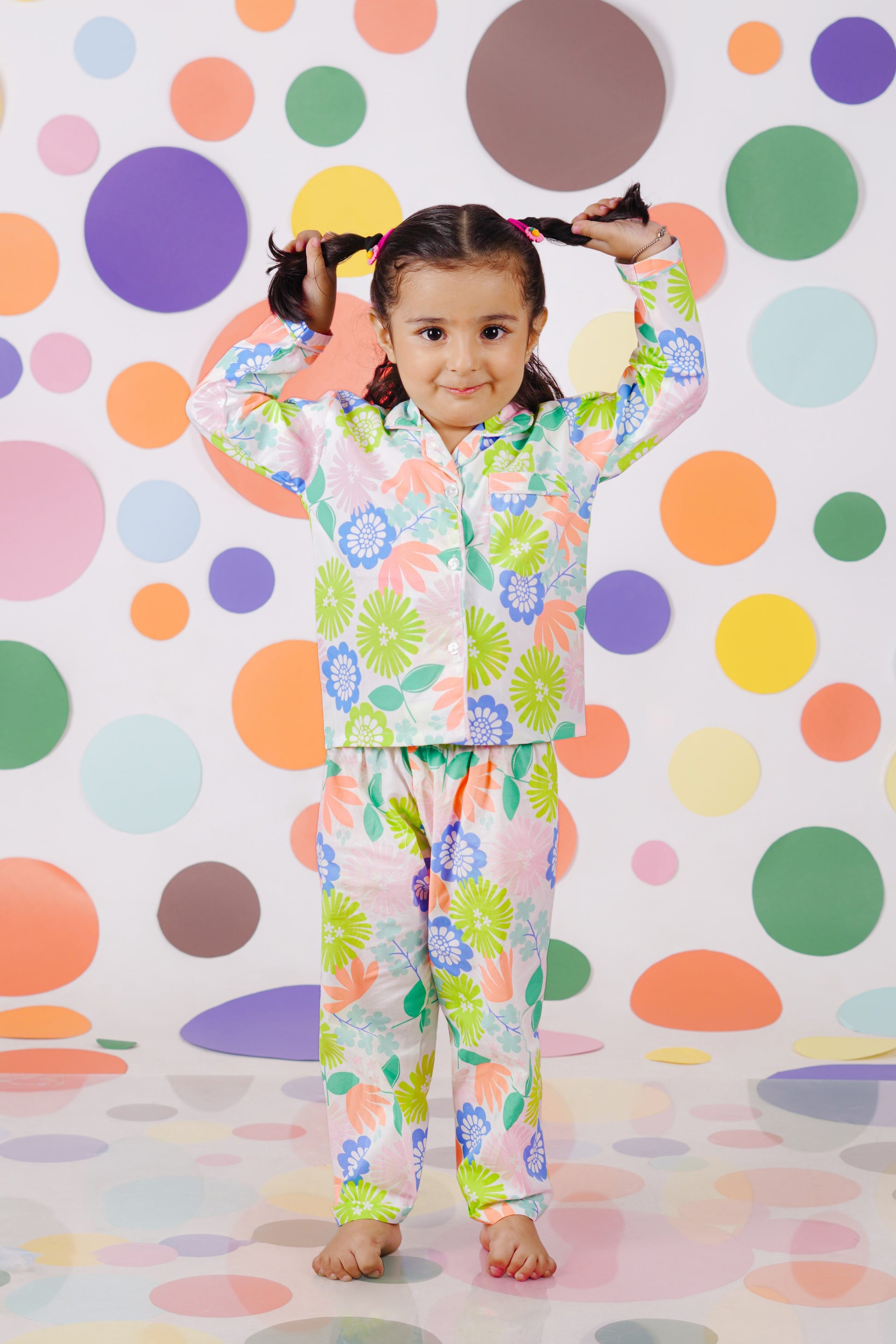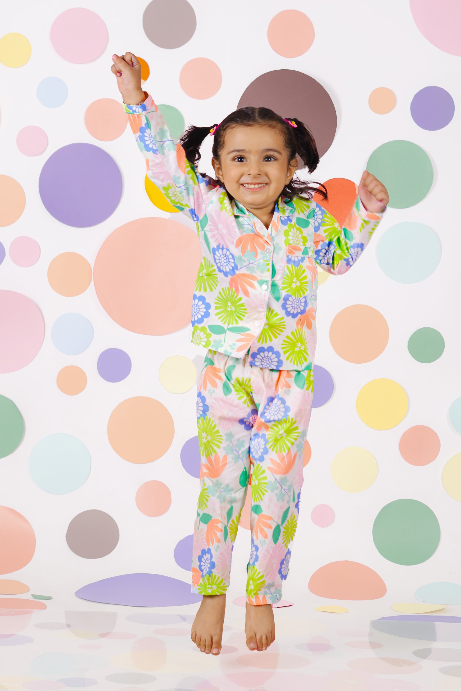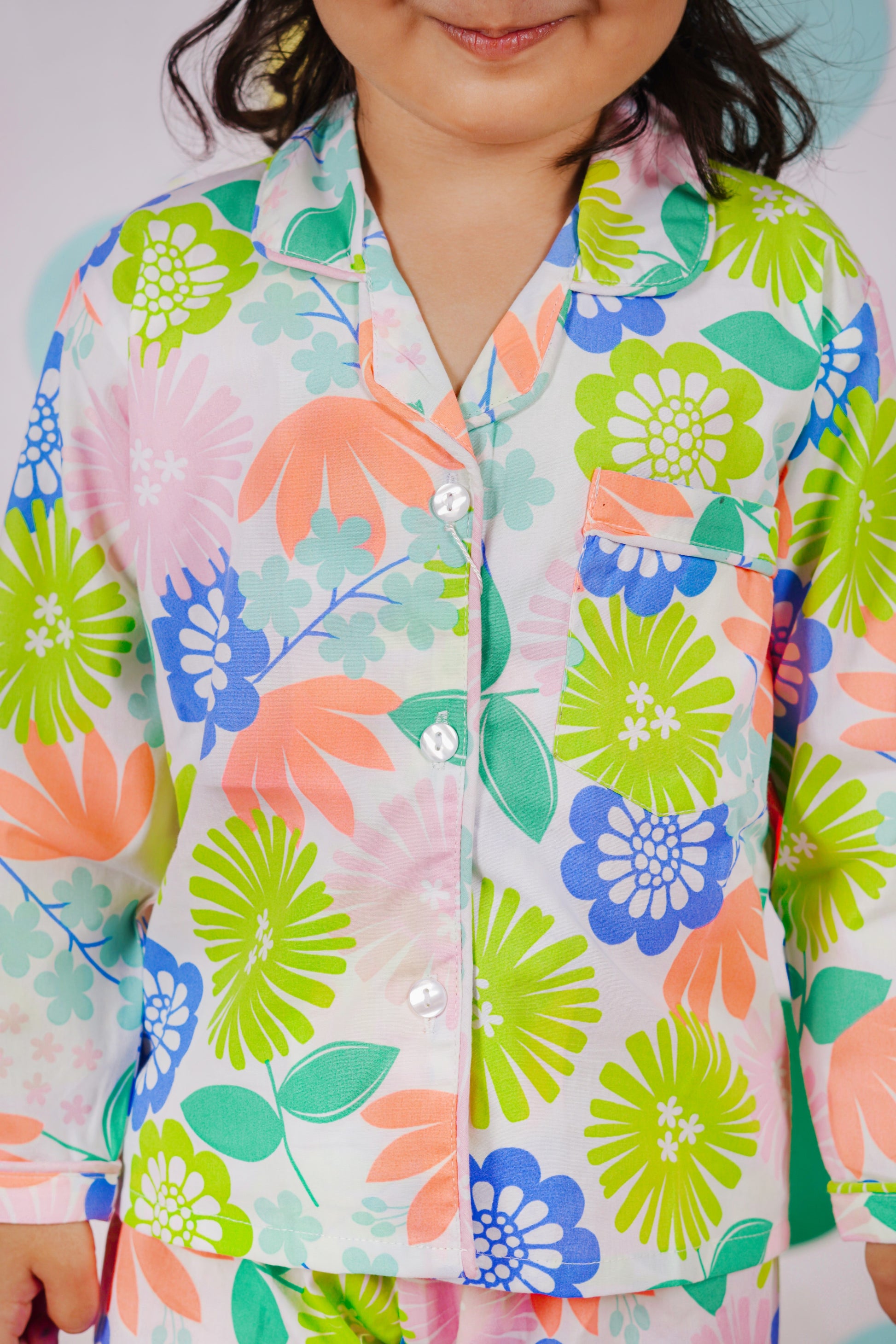 Multi colour floral neon print night suit
